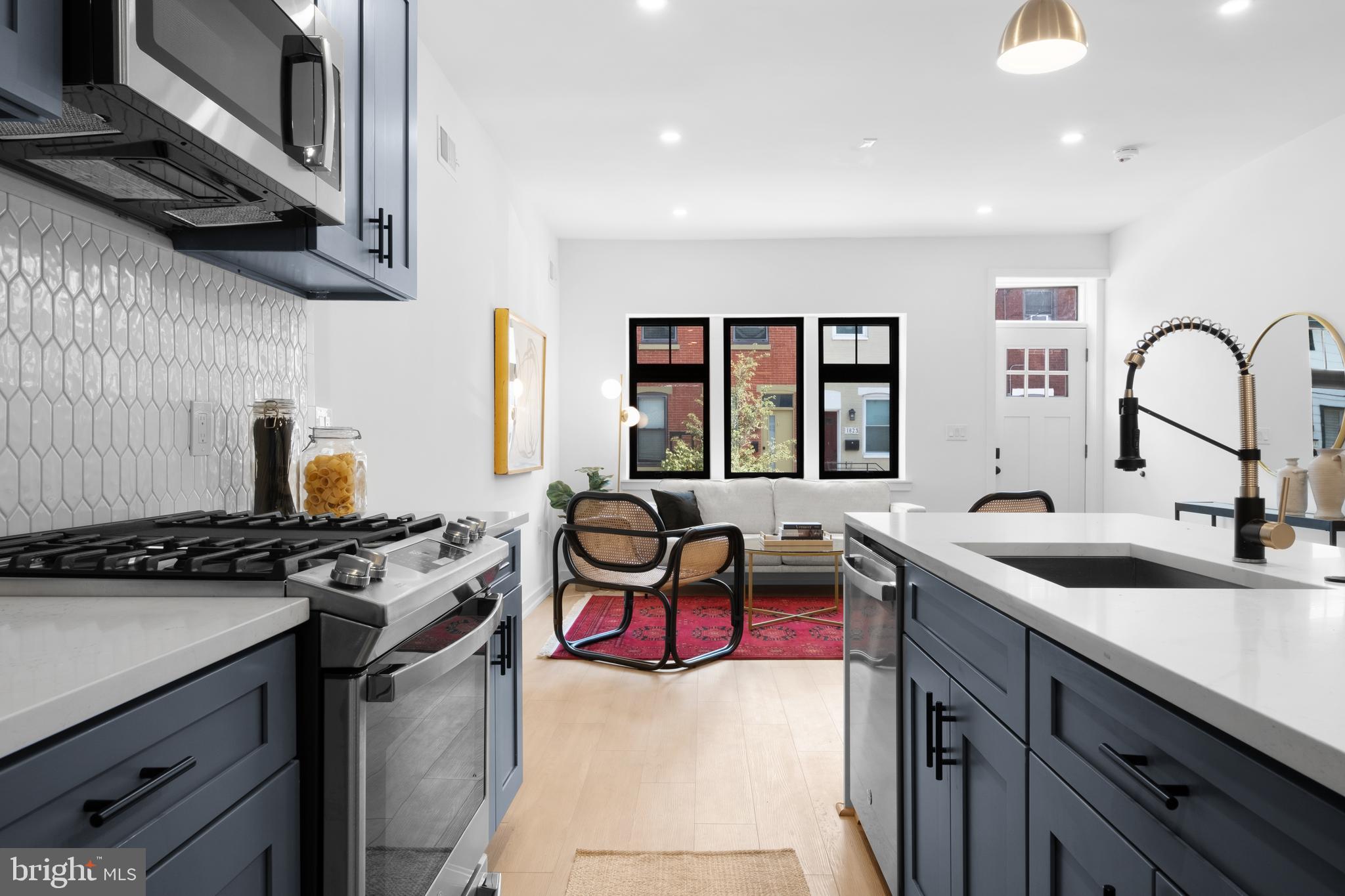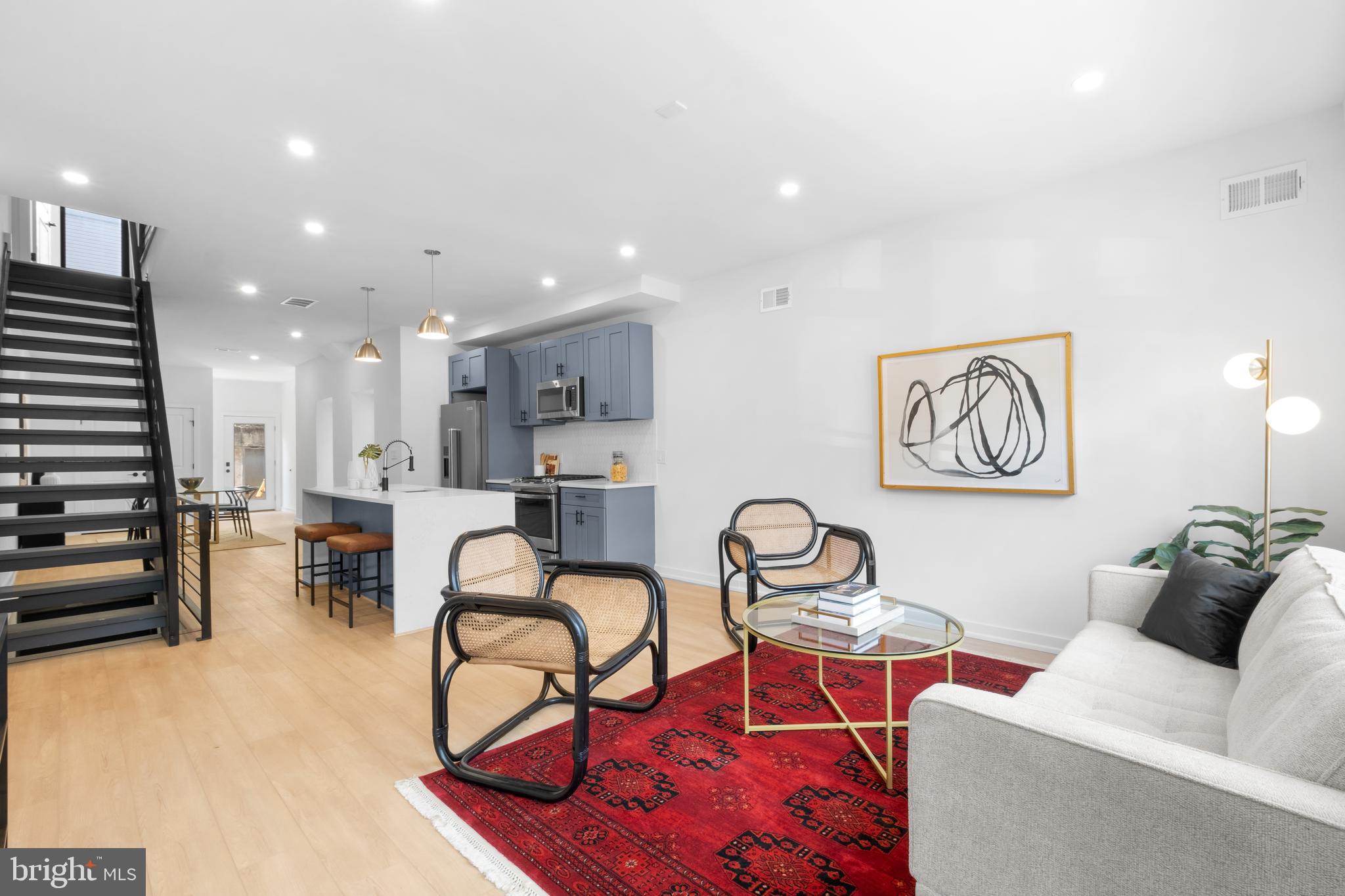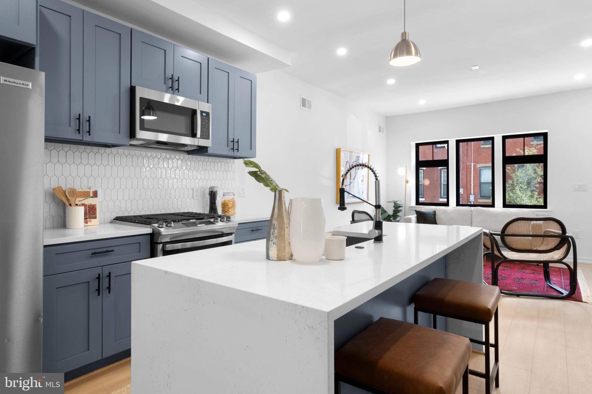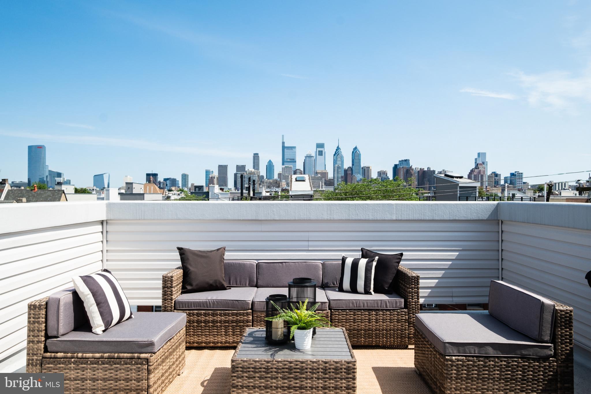 Welcome home to 1818 Wharton! This is a newly renovated and beautifully designed home in the heart of Point Breeze. If you are looking for a 3-story, 3 bed, 3.5 baths, large first floor patio and a roof deck with stunning City views, you have arrived. This large 16'x 62' lot provides the rooms with generous proportions and the additional side windows flood it with natural light. An original painted brick facade and cornice line, in contrasting black and white, make it a standout from others. Entering one is welcomed into an open floor plan with a large living room, centrally located kitchen and separate dining area, plus a convenient powder room and access to the rear patio. The location of the kitchen allows to comfortably entertain in both directions making everyone feel included in the socializing. There is a ton of countertop and cabinet space throughout. Also included is a breakfast bar with pendant lighting. The basement is finished for dry storage and mechanicals. The 2nd floor you'll find two large bedrooms with ample closet space, a laundry room, and a full hallway bathroom. The top-floor oasis of a primary suite includes a nicely sized bedroom, large walking closet, spacious 4 piece bath, entertainment bar and sliding doors to a deck area. This home is completed with the impressive views from the roof deck which makes one want to cook, relax and enjoy a peaceful nightscape. Walking distance to Two Eagles Cafe, On Point Bistro, American Sardine Bar, The Tasty Toast, and many more Point Breeze and Graduate Hospital favorites! Seize the day and schedule a showing to experience the perfect blend of modern luxury and comfortable living. The seller is offering a one year American Home Shield Warranty.