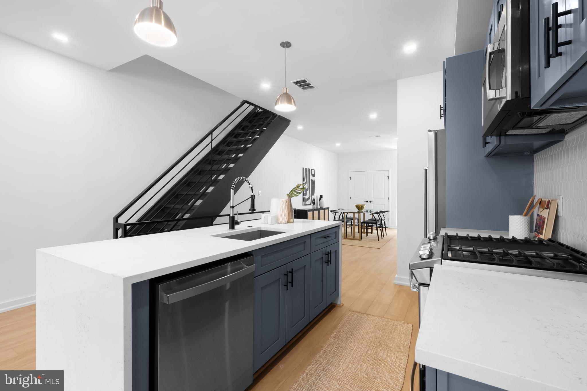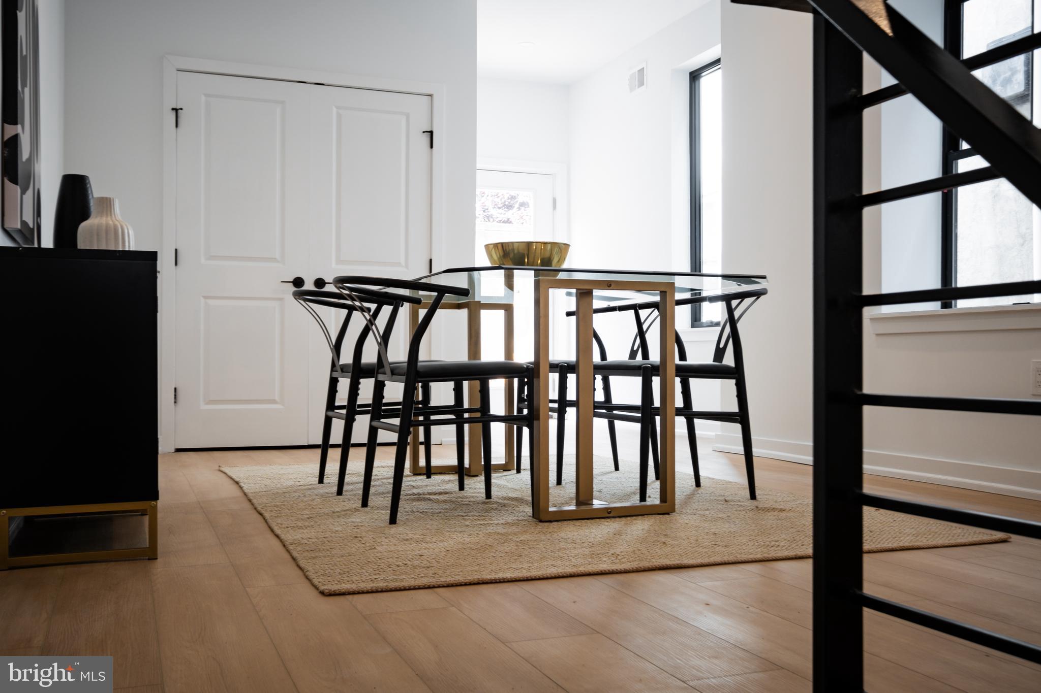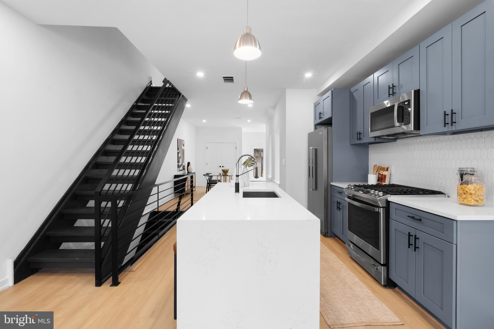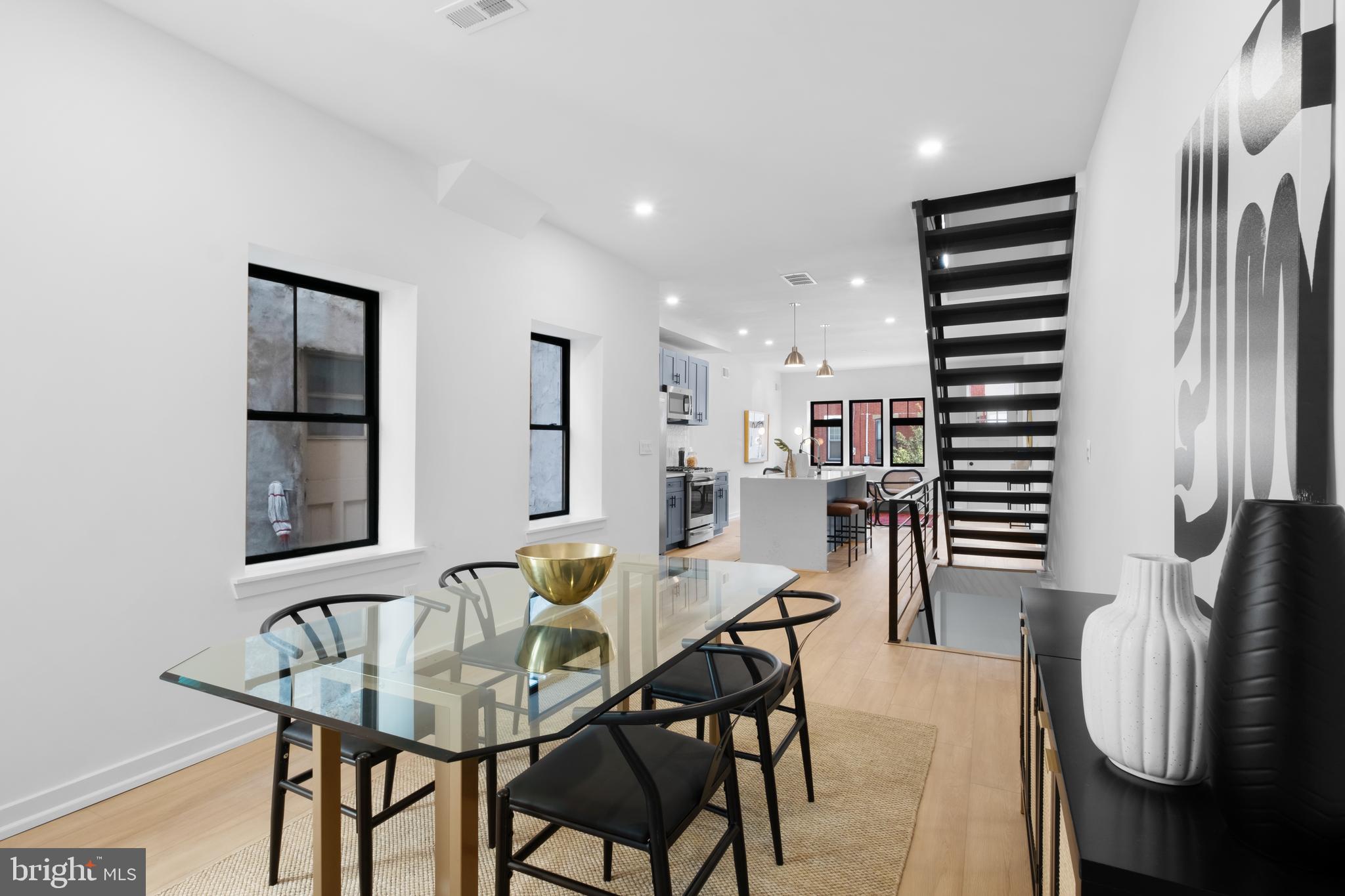 Welcome home to 1818 Wharton! This is a newly renovated and beautifully designed home in the heart of Point Breeze. If you are looking for a 3-story, 3 bed, 3.5 baths, large first floor patio and a roof deck with stunning City views, you have arrived. This large 16'x 62' lot provides the rooms with generous proportions and the additional side windows flood it with natural light. An original painted brick facade and cornice line, in contrasting black and white, make it a standout from others. Entering one is welcomed into an open floor plan with a large living room, centrally located kitchen and separate dining area, plus a convenient powder room and access to the rear patio. The location of the kitchen allows to comfortably entertain in both directions making everyone feel included in the socializing. There is a ton of countertop and cabinet space throughout. Also included is a breakfast bar with pendant lighting. The basement is finished for dry storage and mechanicals. The 2nd floor you'll find two large bedrooms with ample closet space, a laundry room, and a full hallway bathroom. The top-floor oasis of a primary suite includes a nicely sized bedroom, large walking closet, spacious 4 piece bath, entertainment bar and sliding doors to a deck area. This home is completed with the impressive views from the roof deck which makes one want to cook, relax and enjoy a peaceful nightscape. Walking distance to Two Eagles Cafe, On Point Bistro, American Sardine Bar, The Tasty Toast, and many more Point Breeze and Graduate Hospital favorites! Seize the day and schedule a showing to experience the perfect blend of modern luxury and comfortable living. The seller is offering a one year American Home Shield Warranty.