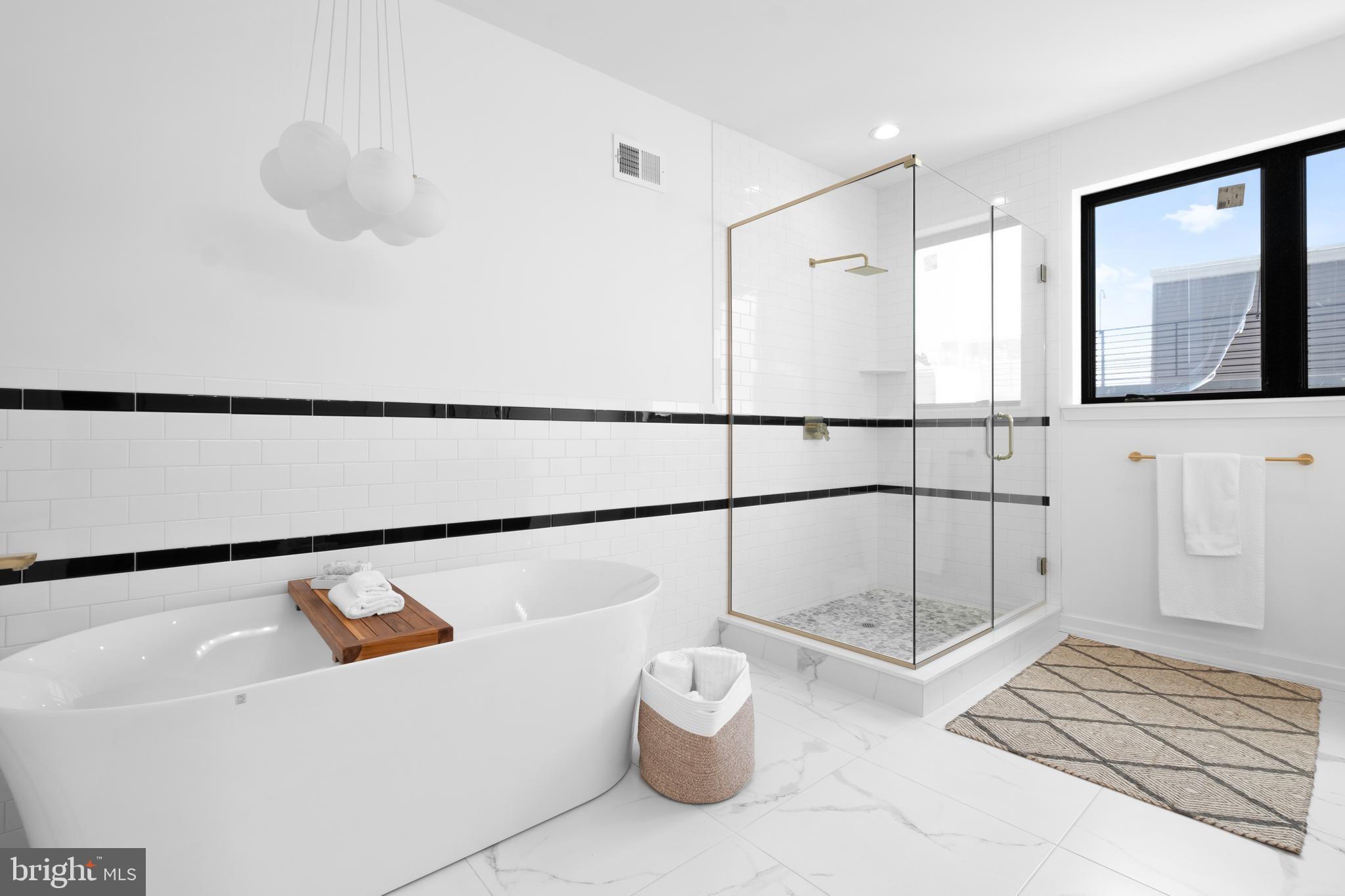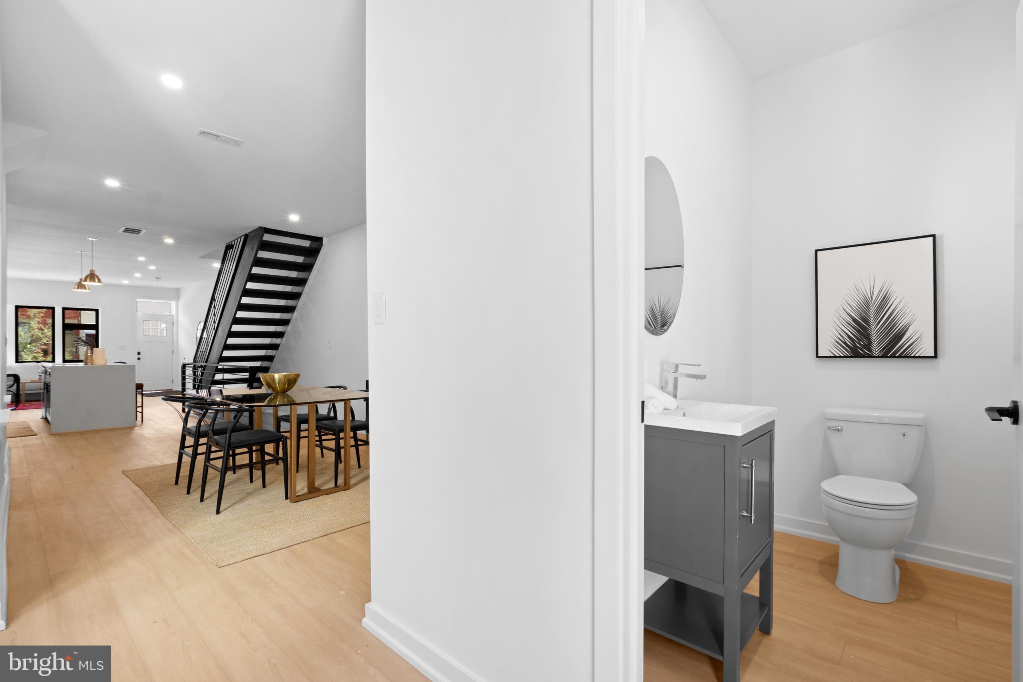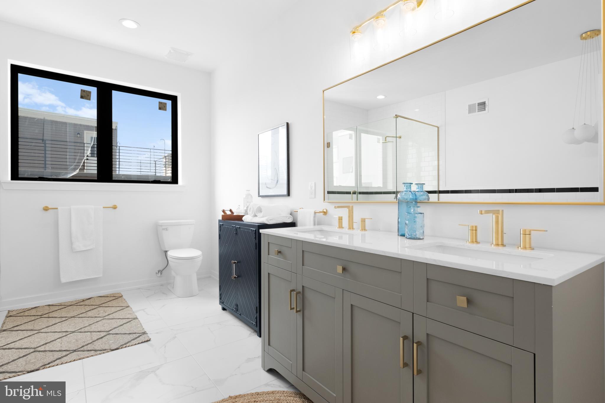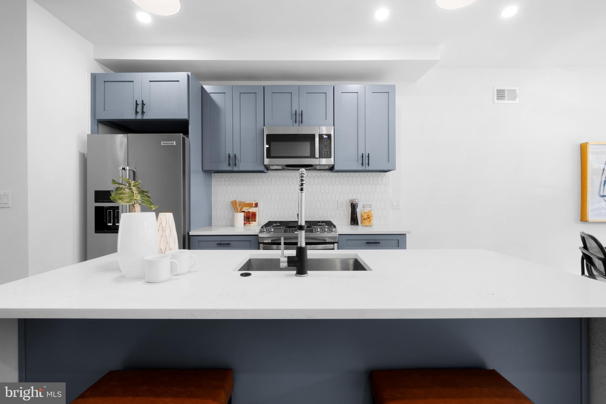 Welcome home to 1818 Wharton! This is a newly renovated and beautifully designed home in the heart of Point Breeze. If you are looking for a 3-story, 3 bed, 3.5 baths, large first floor patio and a roof deck with stunning City views, you have arrived. This large 16'x 62' lot provides the rooms with generous proportions and the additional side windows flood it with natural light. An original painted brick facade and cornice line, in contrasting black and white, make it a standout from others. Entering one is welcomed into an open floor plan with a large living room, centrally located kitchen and separate dining area, plus a convenient powder room and access to the rear patio. The location of the kitchen allows to comfortably entertain in both directions making everyone feel included in the socializing. There is a ton of countertop and cabinet space throughout. Also included is a breakfast bar with pendant lighting. The basement is finished for dry storage and mechanicals. The 2nd floor you'll find two large bedrooms with ample closet space, a laundry room, and a full hallway bathroom. The top-floor oasis of a primary suite includes a nicely sized bedroom, large walking closet, spacious 4 piece bath, entertainment bar and sliding doors to a deck area. This home is completed with the impressive views from the roof deck which makes one want to cook, relax and enjoy a peaceful nightscape. Walking distance to Two Eagles Cafe, On Point Bistro, American Sardine Bar, The Tasty Toast, and many more Point Breeze and Graduate Hospital favorites! Seize the day and schedule a showing to experience the perfect blend of modern luxury and comfortable living. The seller is offering a one year American Home Shield Warranty.
