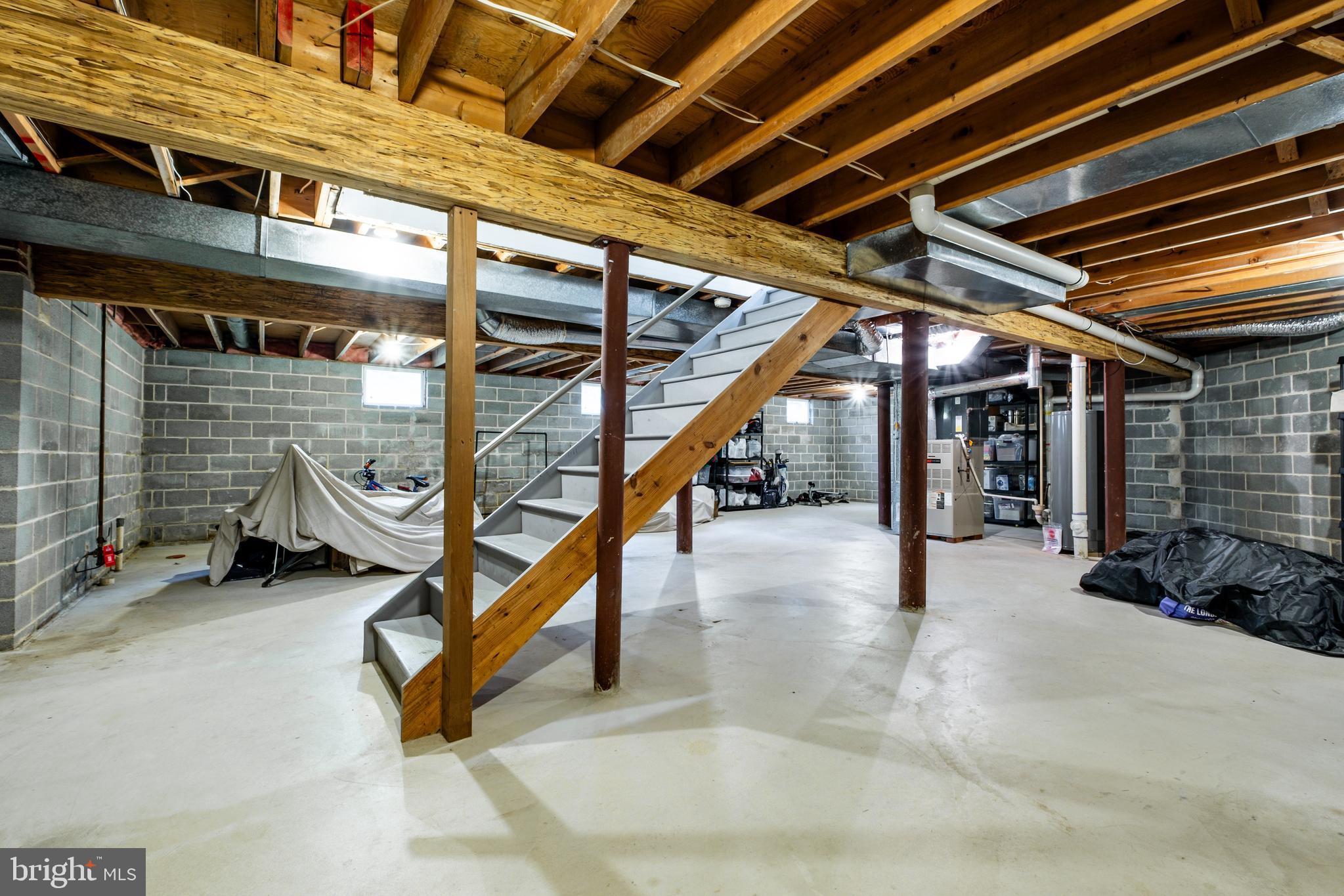 Downstairs, the unfinished basement spans approximately 1,100 square feet with high ceilings, built-in plumbing, and windows for natural light and ventilation, offering endless possibilities for a future recreation room, gym, guest suite, or additional living space.