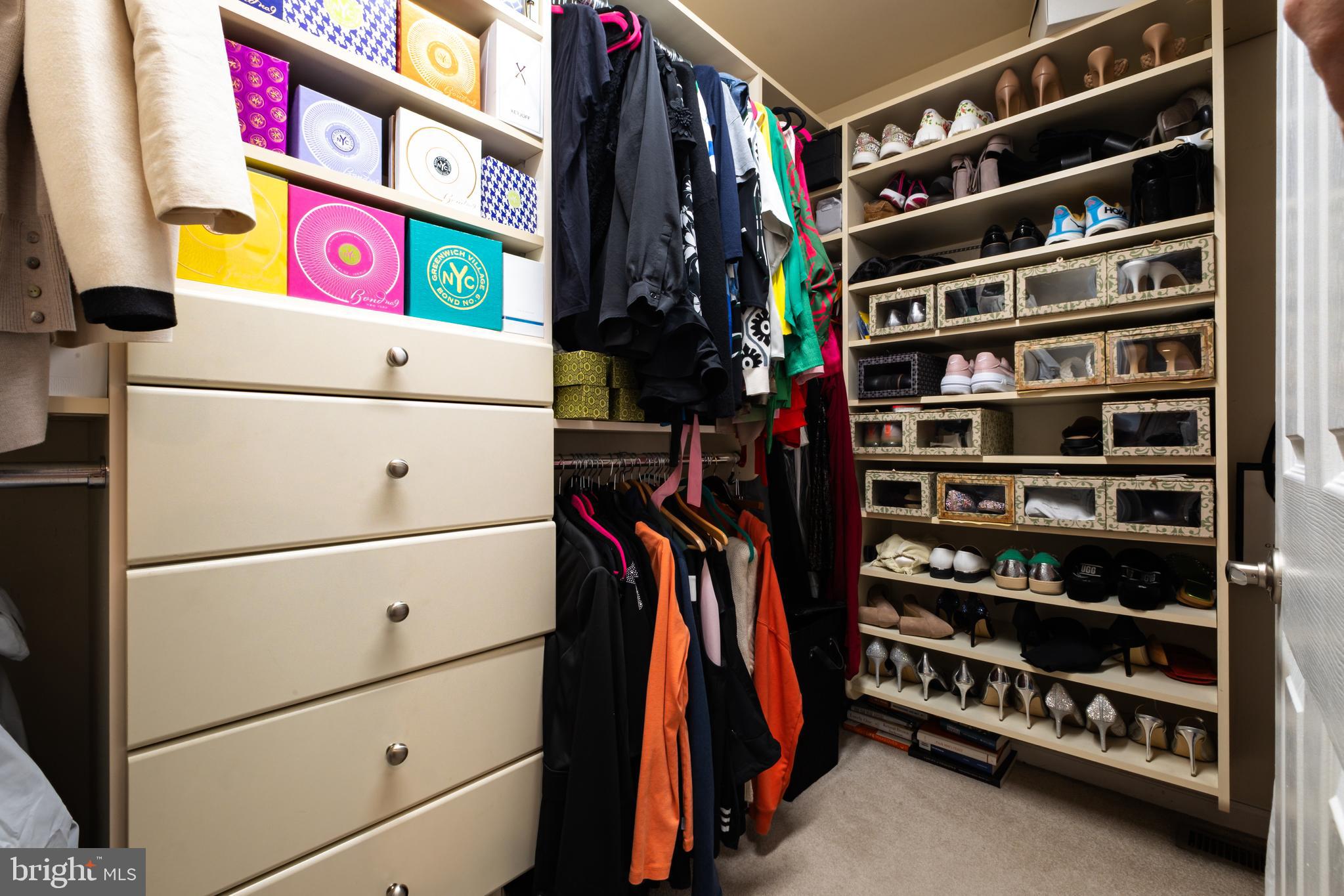 Upstairs, the primary suite offers peaceful backyard views, two spacious walk-in closets, and a four-piece en-suite bath with whirlpool tub and double vanity. Each secondary bedroom is generously sized with excellent natural light and ample walk-in closets, most featuring **built-in organizational systems by California Closets. A full hallway bath with a double vanity makes sharing easy, and a dedicated second-floor laundry room adds daily convenience. A central linen closet provides additional storage.