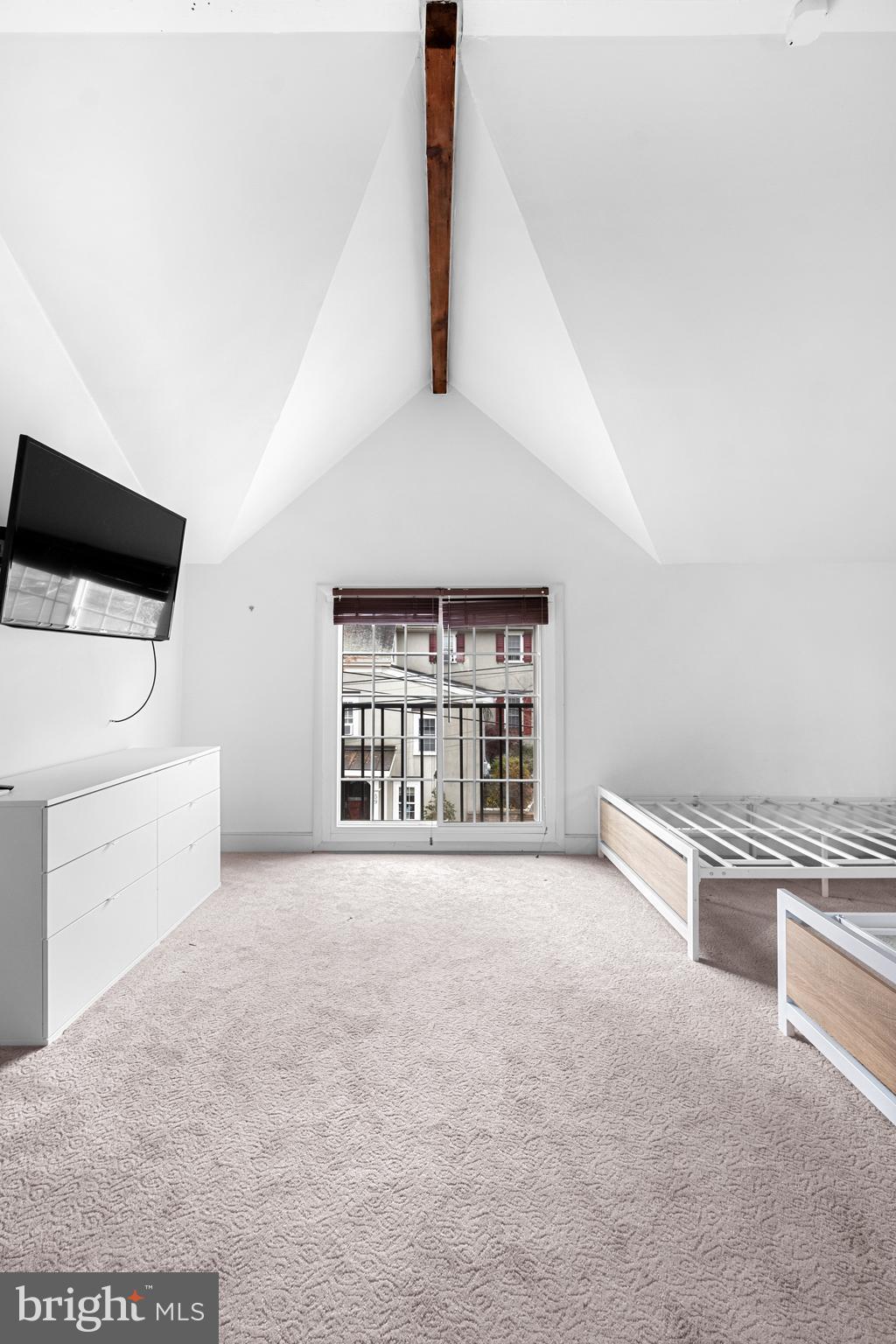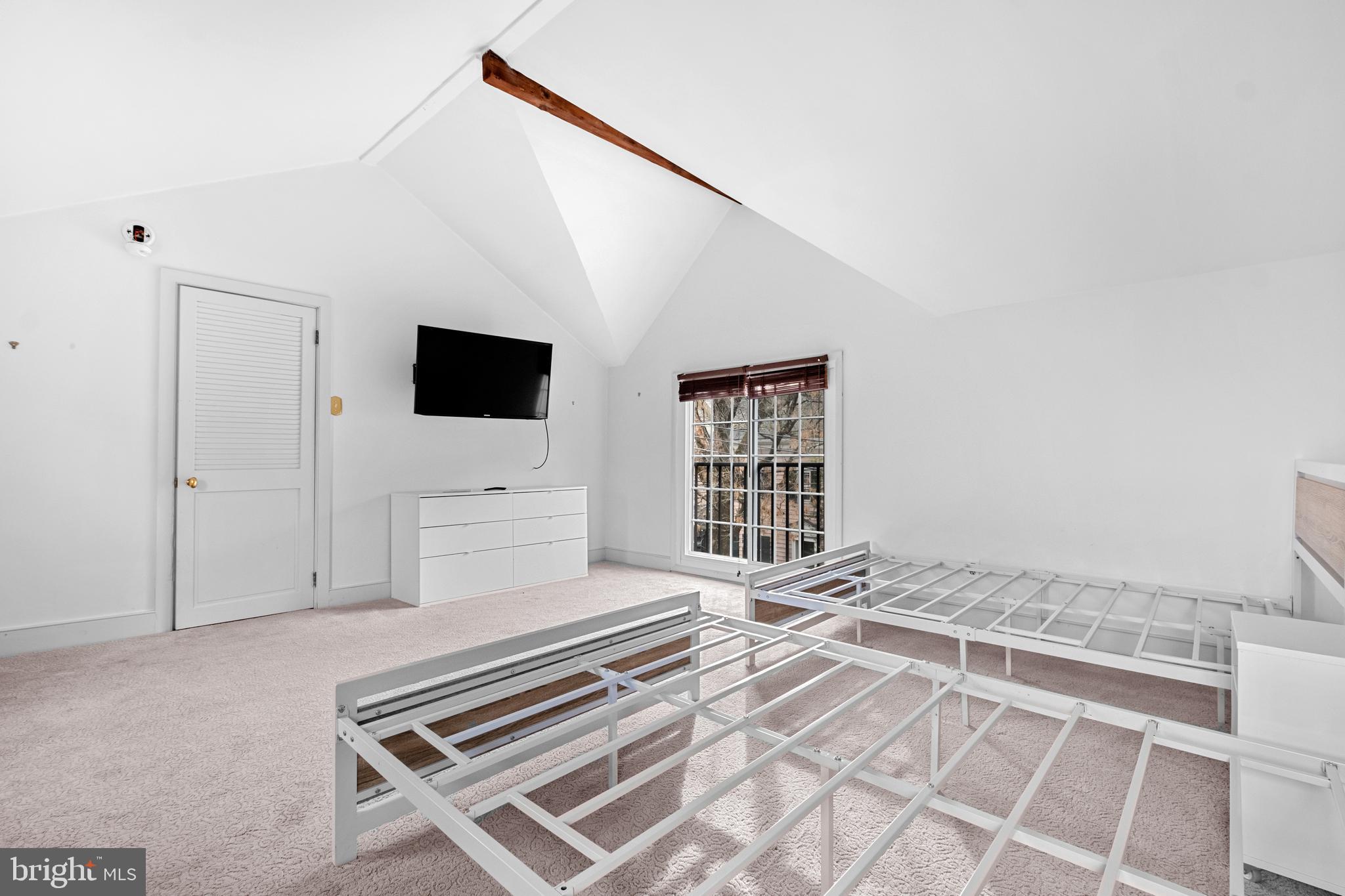 Upstairs, find a spacious bedroom with a walk-in closet, full bath, and its own private stairs leading to the side of the home. A few steps above sits the home's grand primary suite featuring high ceilings, a walk-in closet, and a full bathroom, plus double doors that open to views of the quiet street and bring in fresh air.